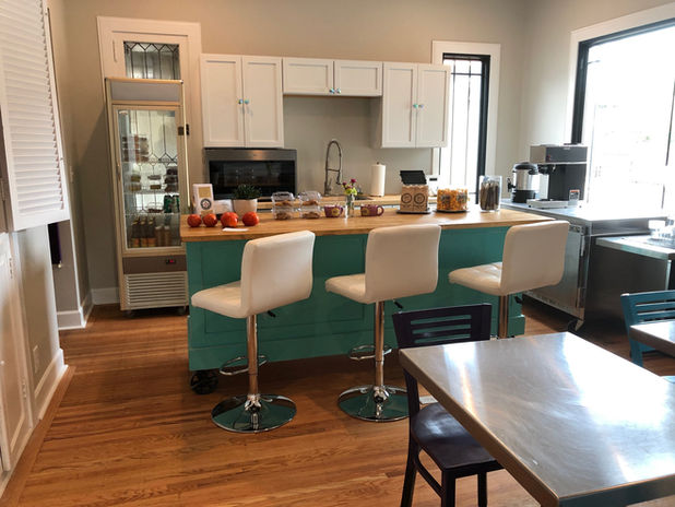 On the 3rd floor, this room for the true introverted business woman who loves creative spaces and modern art AND loves privacy. We have an onsite female entrepreneur in residence who is also our operations and security manager- she is available to assist you during your stay. You get mobile access so you can go in and out as you need to. Get free access to our cafe, community rooms, and workspace.